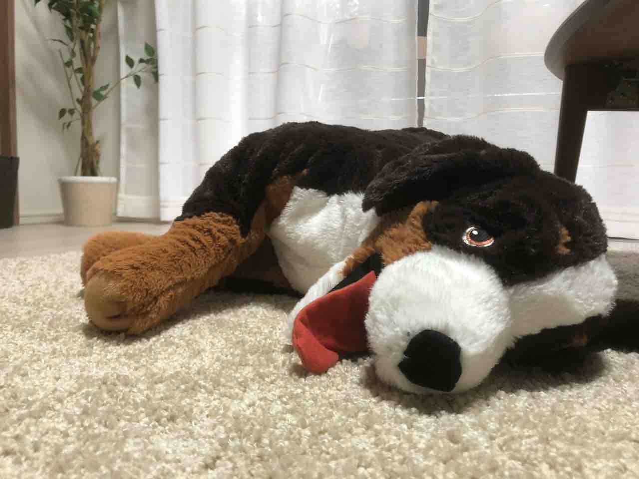 とってもお気に入りで、いつでも耳を引っ張りながら家の中を連れまわしています。