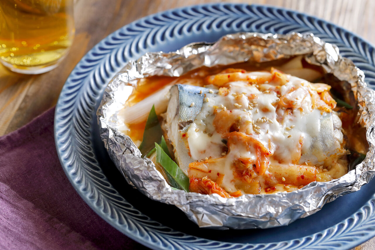 秋さばのキムチチーズホイル焼き