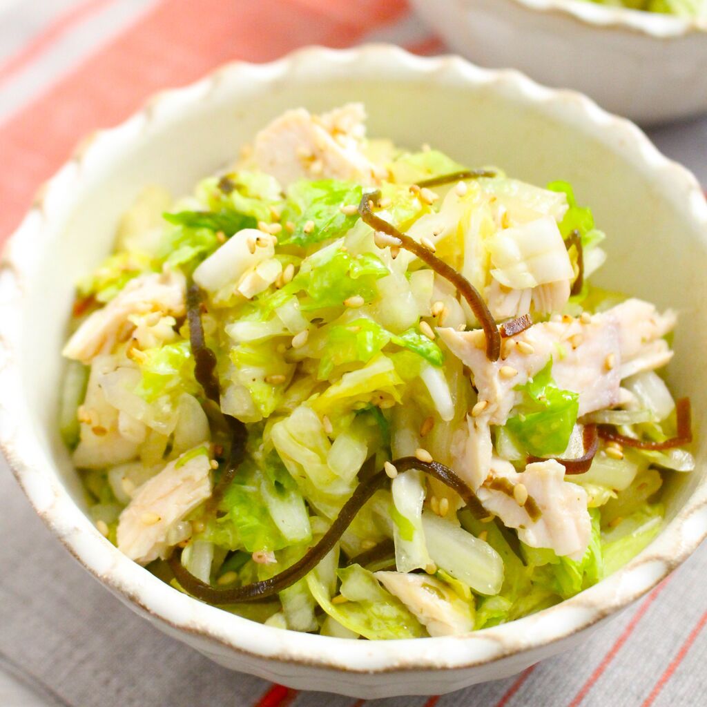 🥬白菜と蒸し鶏の塩昆布サラダ