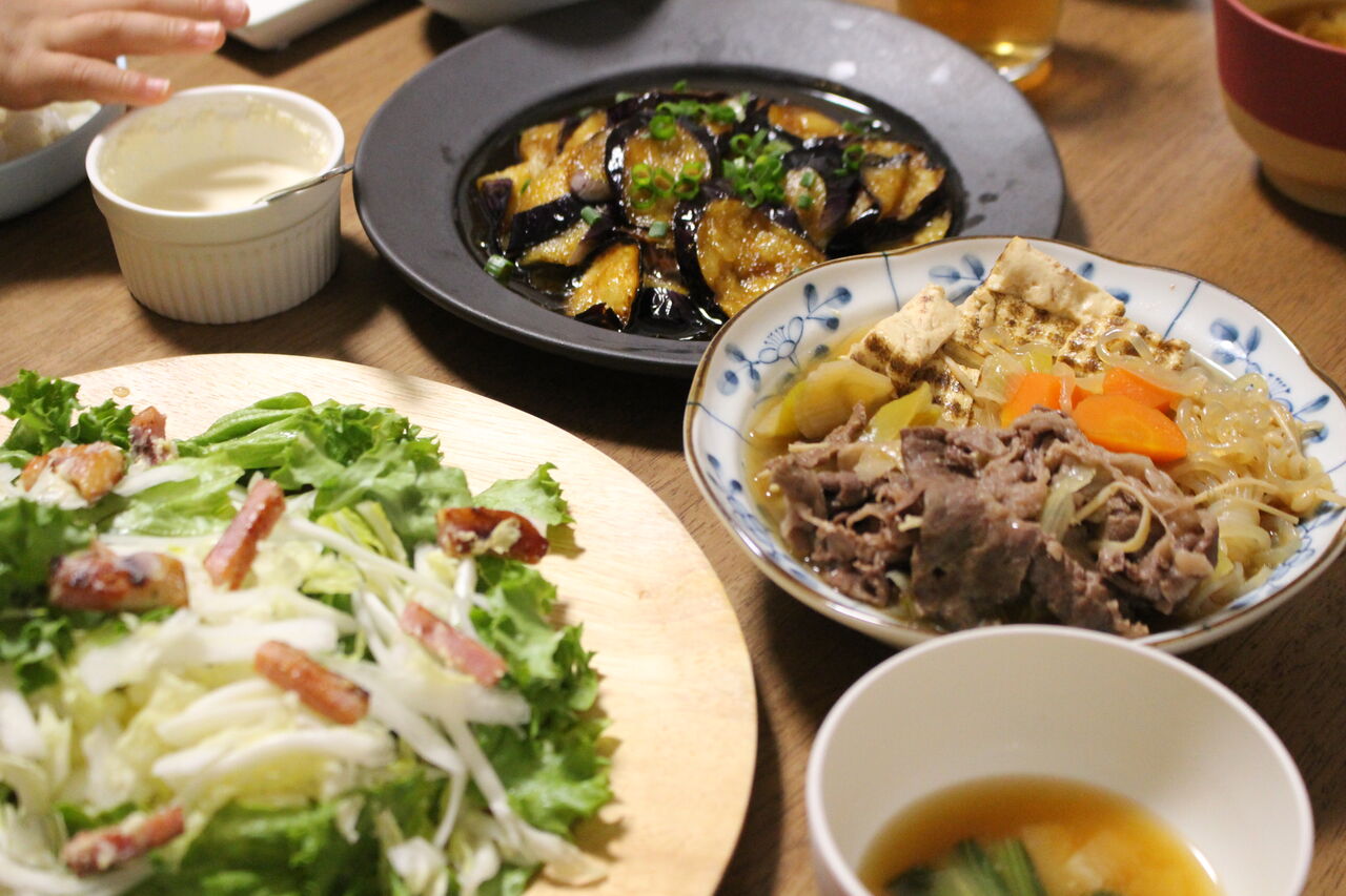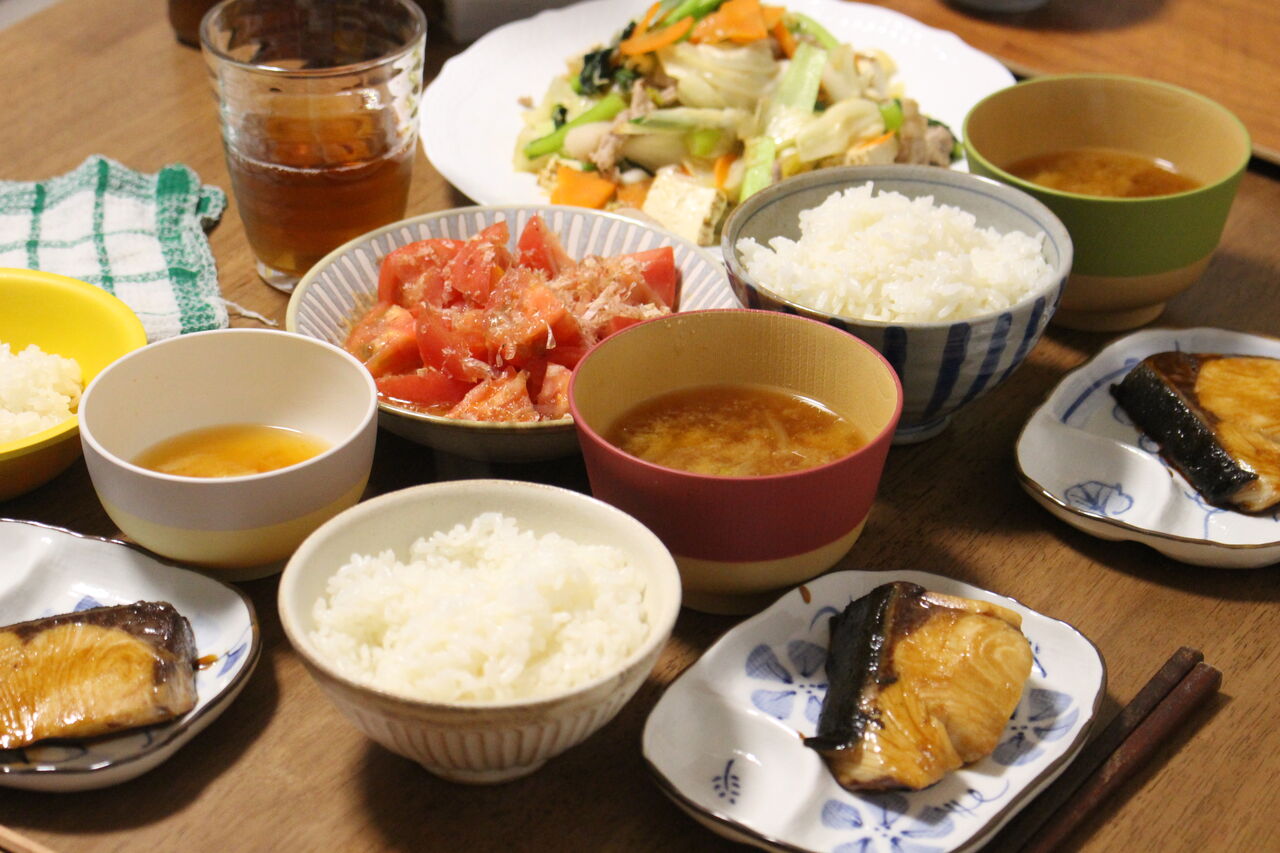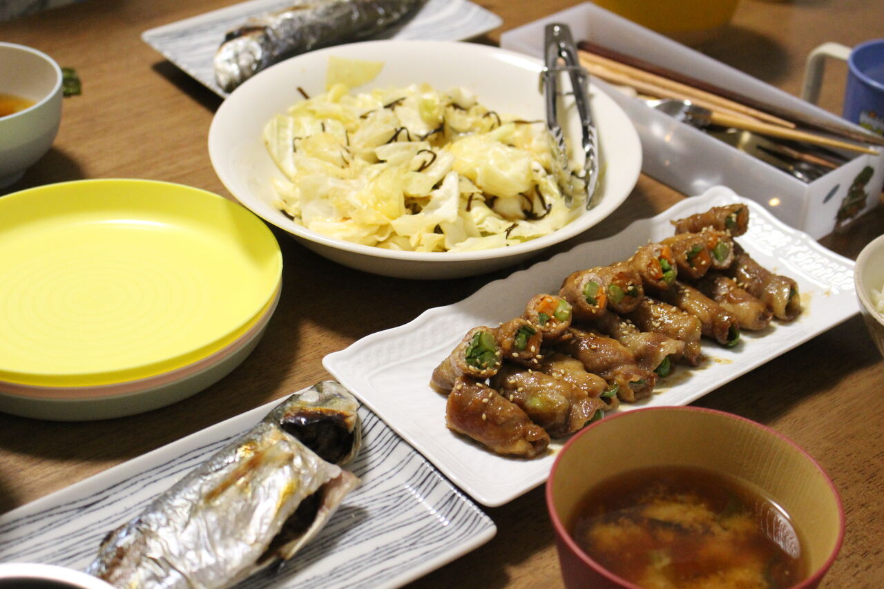 自分(夫)は魚が苦手なので、肉巻きを添えて。