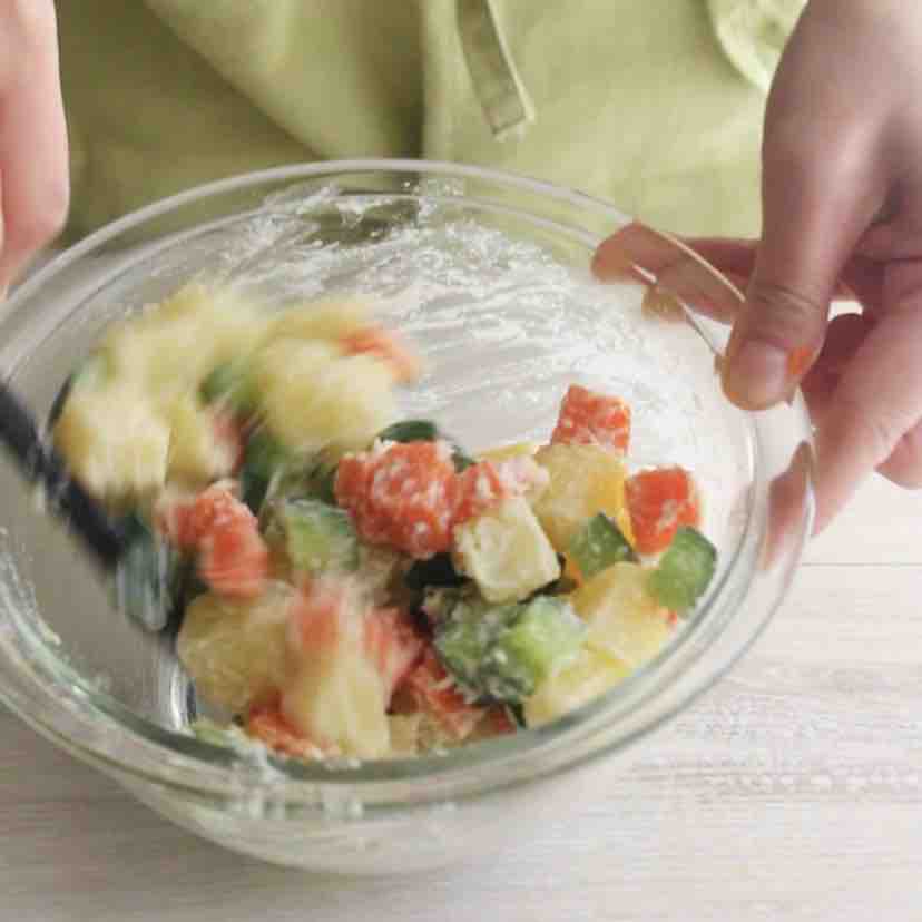 ※だいたいでOKです。じゃがいもの方が崩れやすいので少し大きめにするのがポイントです。