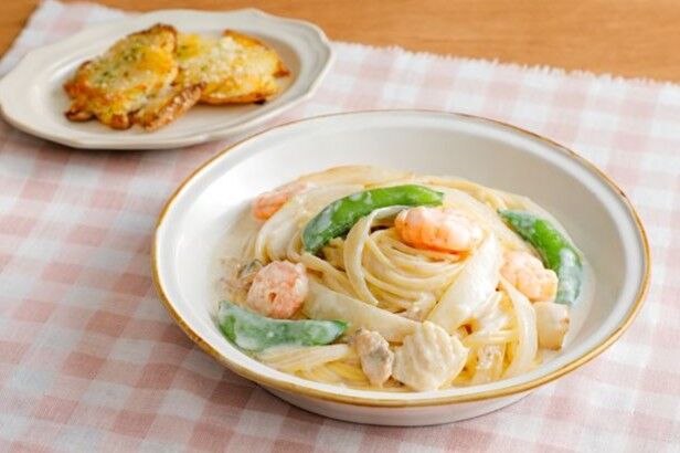 シーフードの旨味がクリームソースに染み出し、じっくりと焼いた新玉ねぎの甘さと合わさり…