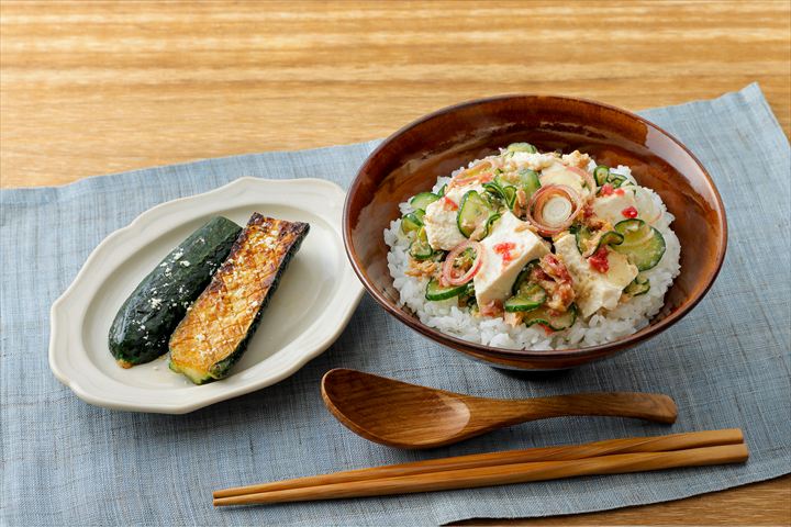 一見冷や汁のように見えますが汁気が少なく、きゅうりの食感も楽しめるので、