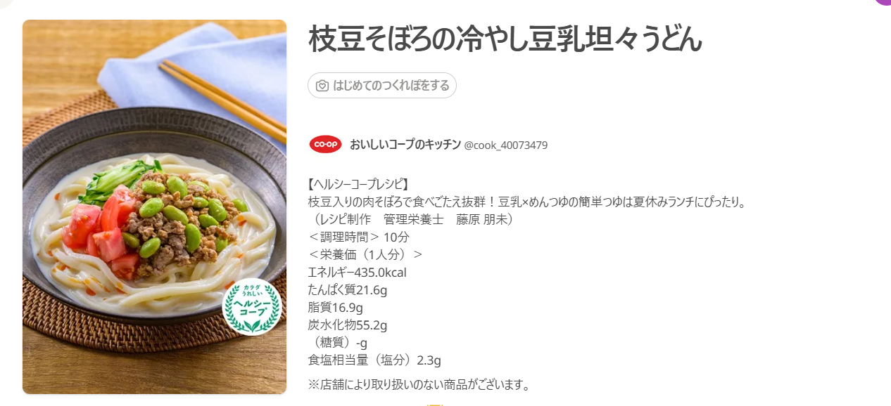 食べ方(レシピ)の提案にて、ヘルシーコープレシピの開発を担当させていただきました!