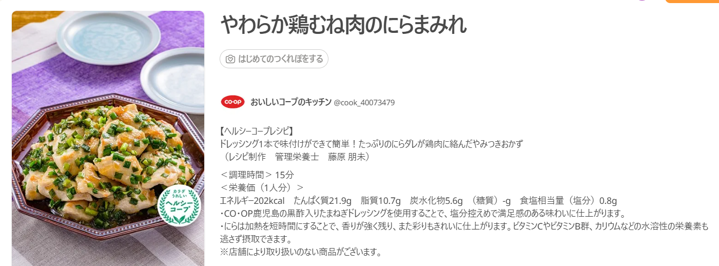 早速初回の8品がヘルシーコープ公式のクックパッドページにて公開となりました。