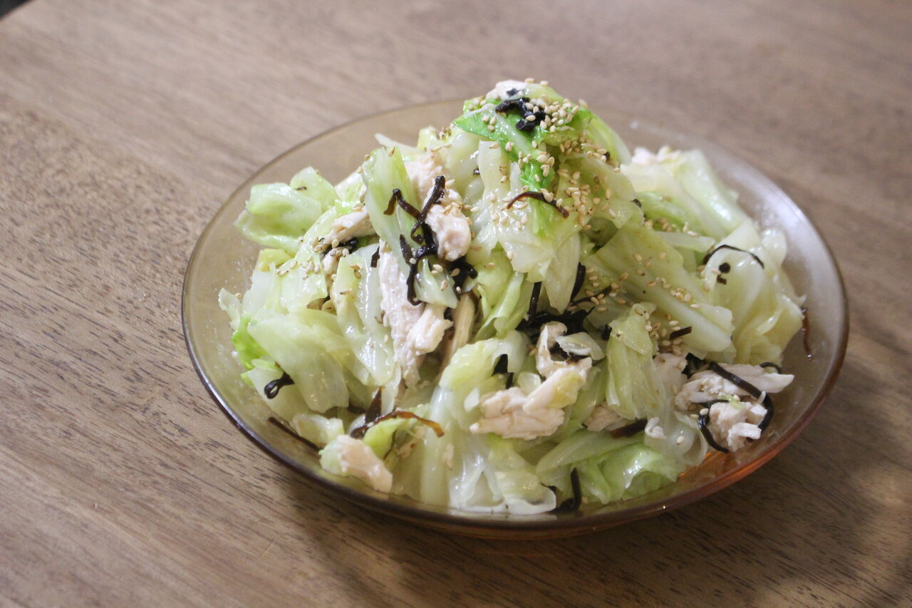 ・蒸しキャベツと蒸し鶏の塩昆布和え