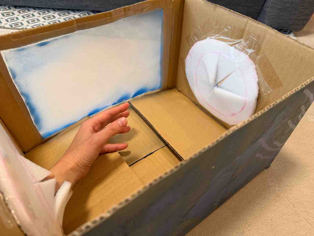 段ボールくりぬくだけでいいよとお願いしたんですが、
